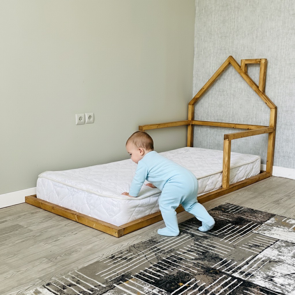 • کودک مالک انتخاب است: در یک گهواره سنتی، کودک برای خوابیدن یا بلند شدن وابسته به کمک بزرگسال است. تخت زمینی مونتهسوری، این محدودیت غیرضروری را از بین میبرد.